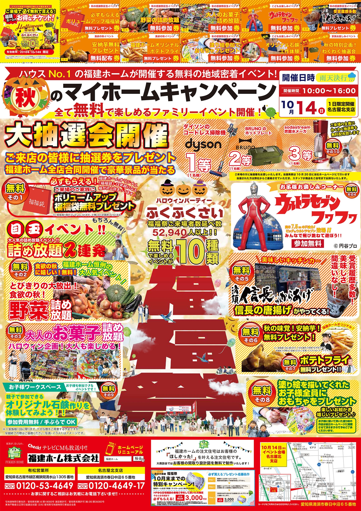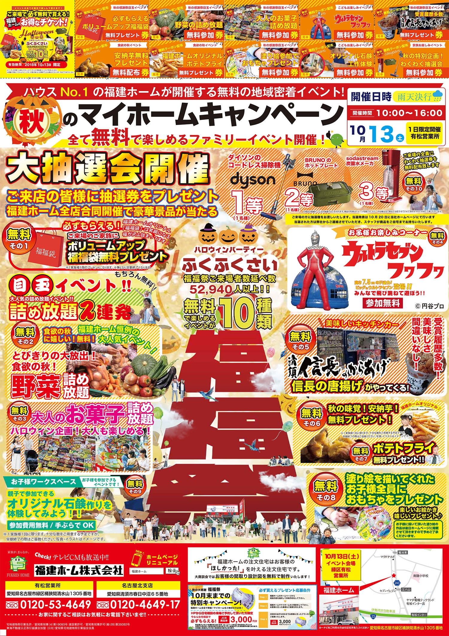 ダイソンのコードレス掃除機やホットプレートなど豪華賞品を用意してお待ちしております。