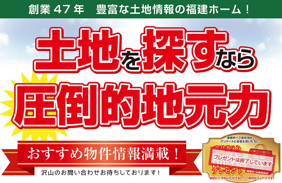 今回のキャンペーンを機に、土地探しでお悩みの方はぜひご相談下さい。