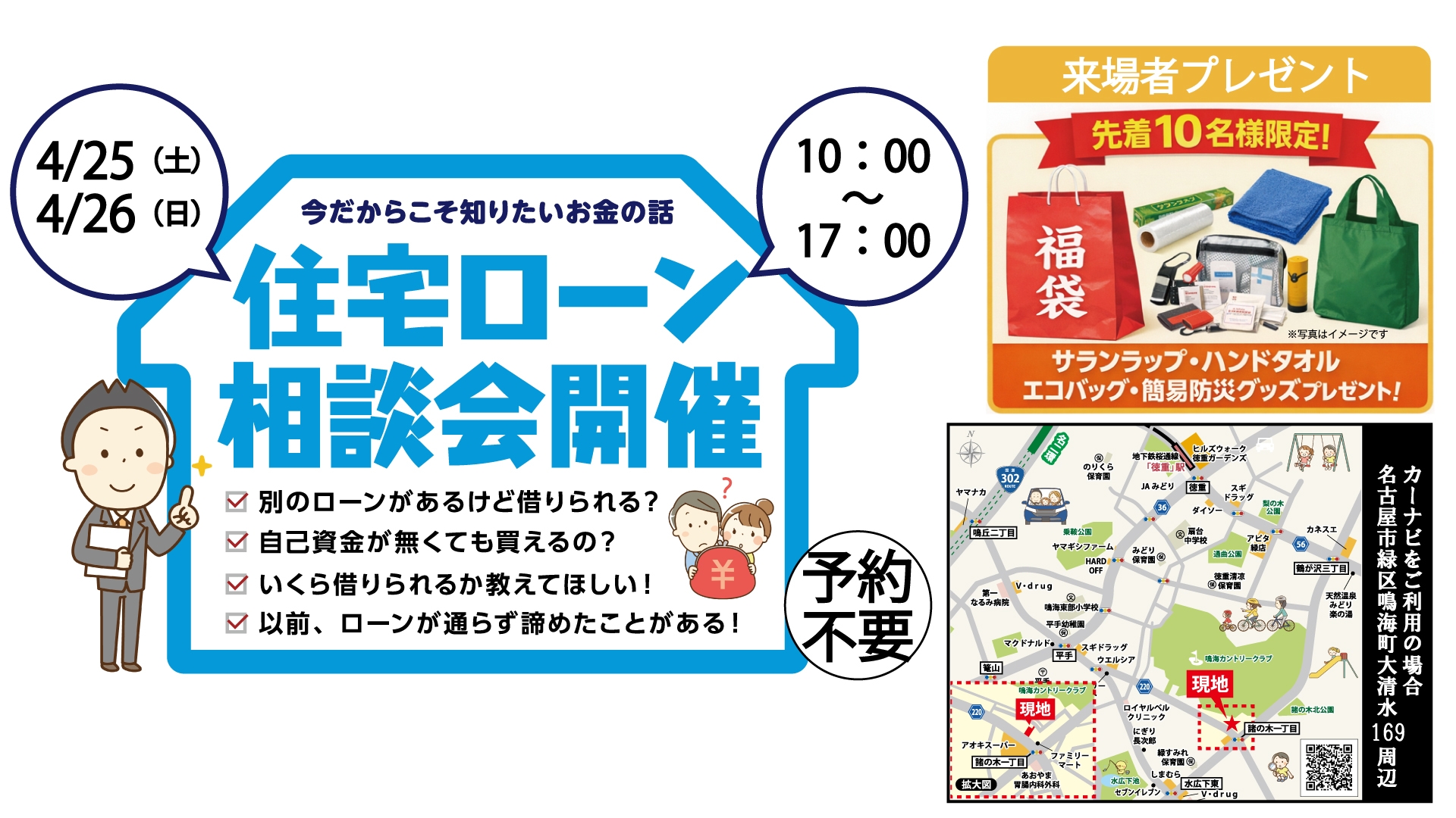 名古屋市緑区鳴海町大清水会場にて住宅ローン相談会を開催します。